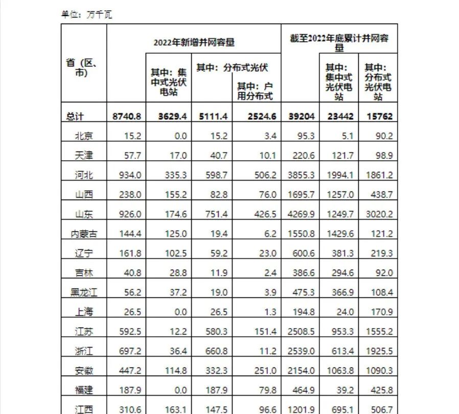 官宣!2022年各省光伏裝機量明細(xì)發(fā)布