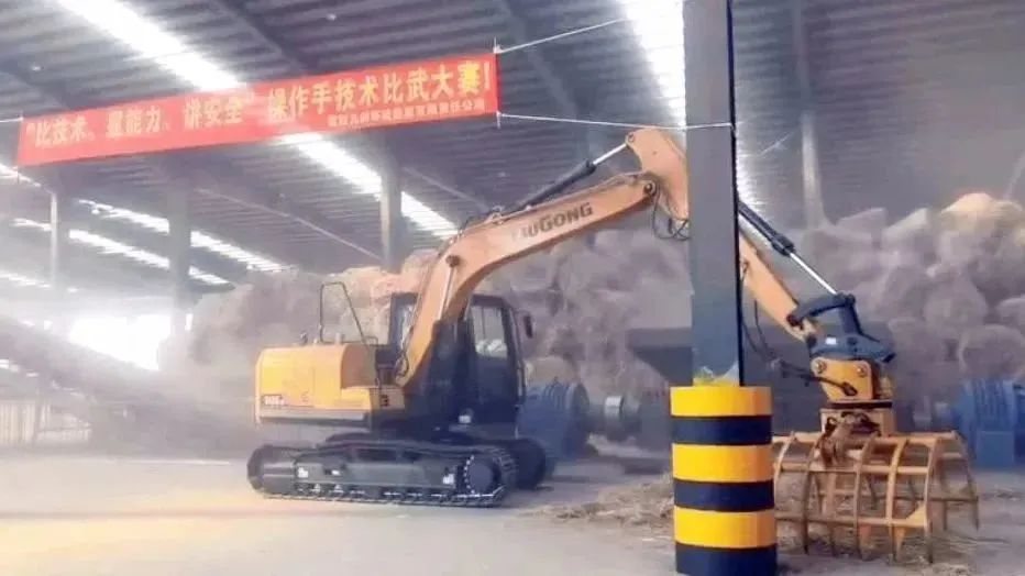 此次技能比武活動兩人一組,一名鉤機手上料、一名鏟車司機負責(zé)推料,在規(guī)定的時間內(nèi),破碎秸稈最多噸數(shù)的獲勝。24名參賽選手精神飽滿,各顯身手,裁判員一絲不茍秉持著公正標(biāo)準(zhǔn)嚴(yán)格評定,展開激烈角逐。